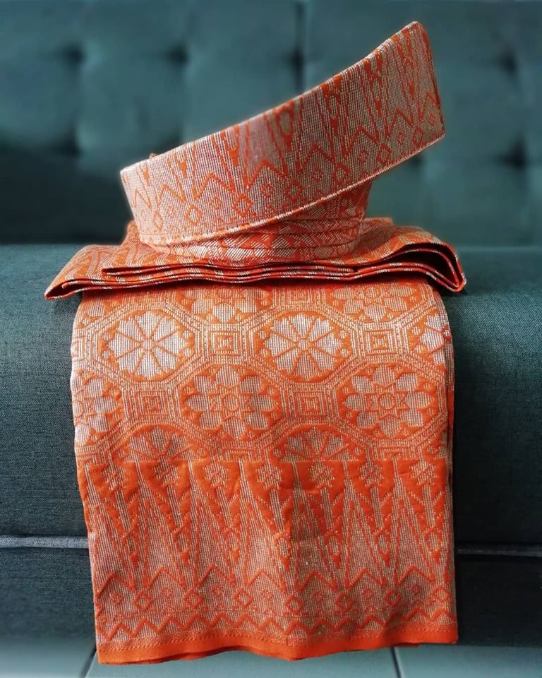 | Set Tanjak Peach Kecoklatan Sulam Silver |